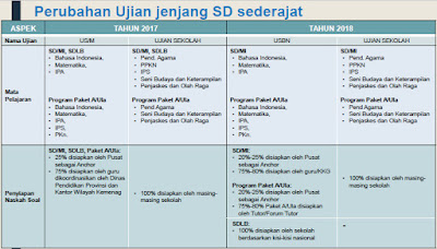 Ada beberapa hal yang berbeda dari sistem Ujian Nasional tahun 2018 dibandingkan tahun 2017. Sebenarnya sistem baru ini bukan hal yang benar-benar fresh, kelihatannya saja baru tapi rasa lama. Disini yang akan saya bahas khusus jenjang Sekolah Dasar. Perubahan paling jelas dari penyebutan Ujian Sekolah atau Madrasah (US/M) menjadi Ujian Sekolah Berstandar nasional (USBN). Esensinya sama, tetap saja tes standar